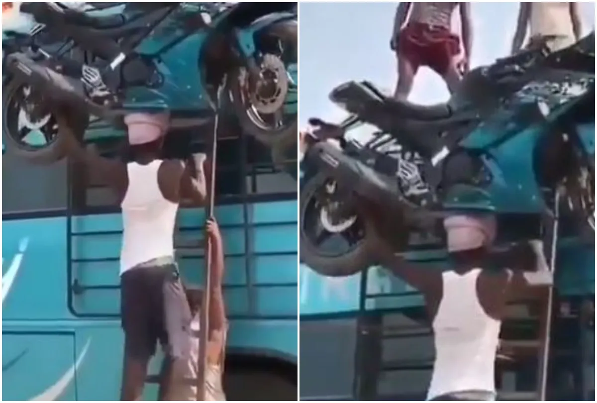 सोशल मीडिया पर डॉक्टर अजयिता नाम की यूजर ने ट्विटर पर 15 सेकेंड का वीडियो शेयर किया है। इस वीडियो को जो भी देख रहा है वो इस शख्स को असल जिंदगी का बाहुबली कह रहा है। इस वीडियो में आप देखेंगे कि एक शख्स सिर पर मोटरसाइकिल उठाकर सीढ़ियों से चढ़ रहा है। ये शख्स इस मोटरसाइकिल को बस के टॉप पर रखने जा रहा है।