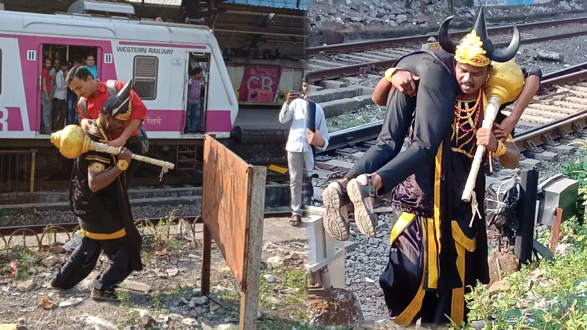 मुंबई: रेलवे स्टेशन पर पैदल चलकर ट्रैक पार करने वाले लोगों को 'यमराज' उठाकर ले जा रहा है। दरअसल, रेलवे की चेतावनी और कार्रवाई के बावजूद लोग सुधरने का नाम नहीं ले रहे हैं। इस वजह से आए दिन हादसे होते रहते हैं। ऐसे में पश्चिम रेलवे ने आरपीएफ के साथ मिलकर एक अभियान चलाया है, जिसके तहत यमराज ट्रैक पर चलने वाले लोगों को सबक सिखा रहा है।