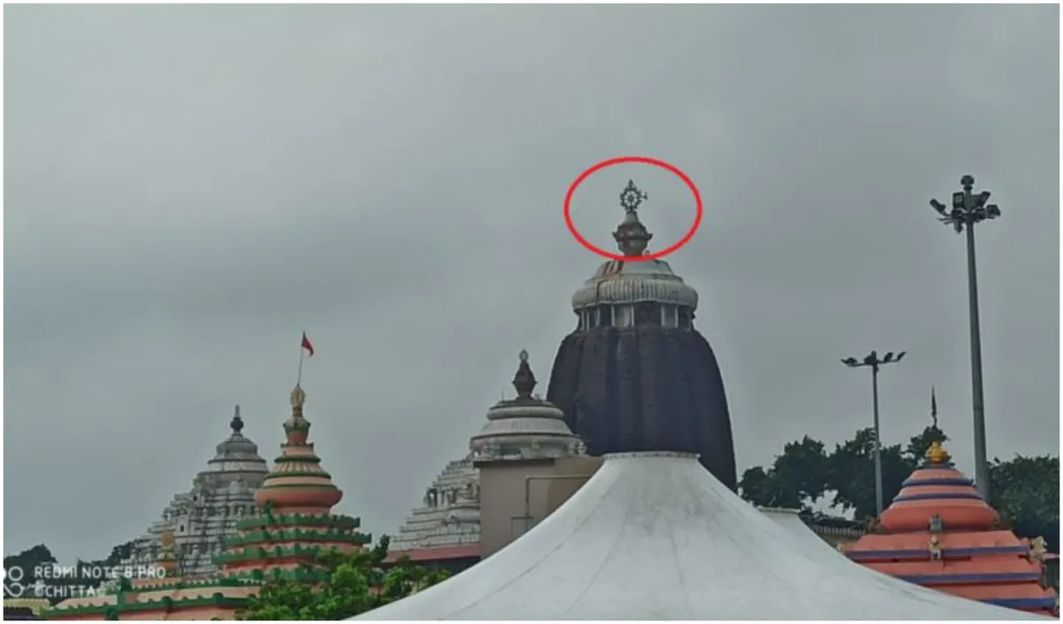 Hindi News वायरल न्‍यूज तेज आंधी बरसात में उड़ गया पुरी के श्री मंदिर का ध्वज, श्रद्धालु भयभीत हुए