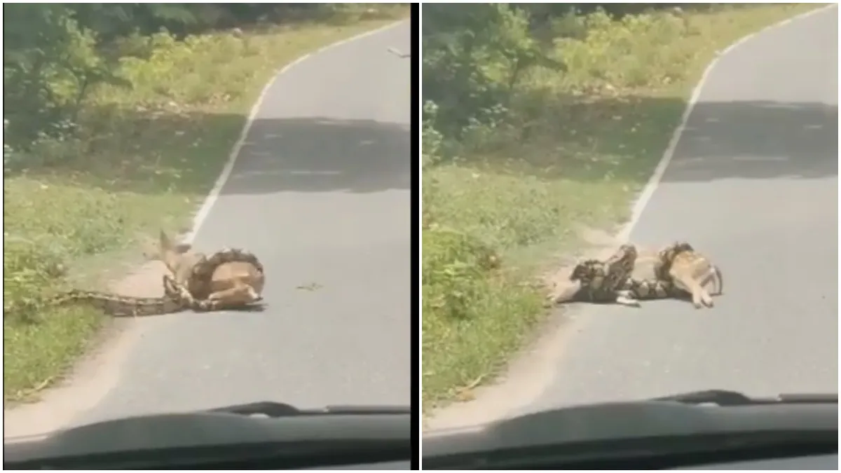 कहते हैं कि जिसका कोई नहीं होता उसका खुदा होता है। जंगल में ताकतवर का ही कानून चलता है और कुछ ऐसा ही नजारा एक वीडियो में देखने को मिला जिसमें एक बड़ा सा अजगर एक मासूम हिरण को अपने घेरे में लपेटे उसका दम निकाल रहा है। इस वायरल वीडियो को देखकर एक बारगी तो आपके भी रोंगटे खड़े हो जाएंगे। लेकिन वीडियो का अंत देखकर आपका विश्वास ईश्वर पर बढ़ जाएगा।