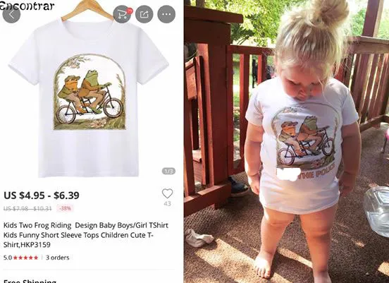 कई बार आदमी सोचता कुछ है और हो कुछ जाता है। हर मां अपने नन्हें बच्चों को प्यारे कपड़ों में देखना चाहती है। ऐसी ही इच्छा इलियोनिस में रहने वाली इस मां कैलसे डॉन विलियम्सन की थी जिसने अपनी तीन साल की नन्ही बेटी के लिए एक चीनी ऑनलाइन सैलर से टीशर्ट बुक की। लेकिन जब टीशर्ट की डिलीवरी हुई और बच्ची ने टीशर्ट पहन ली तो उसे देखकर मां के होश फाख्ता हो गए। अब ये खबर वायरल हो रही है और उधर शरारती लोग इस टीशर्ट की ऑनलाइन बुकिंग करवा रहे हैं।