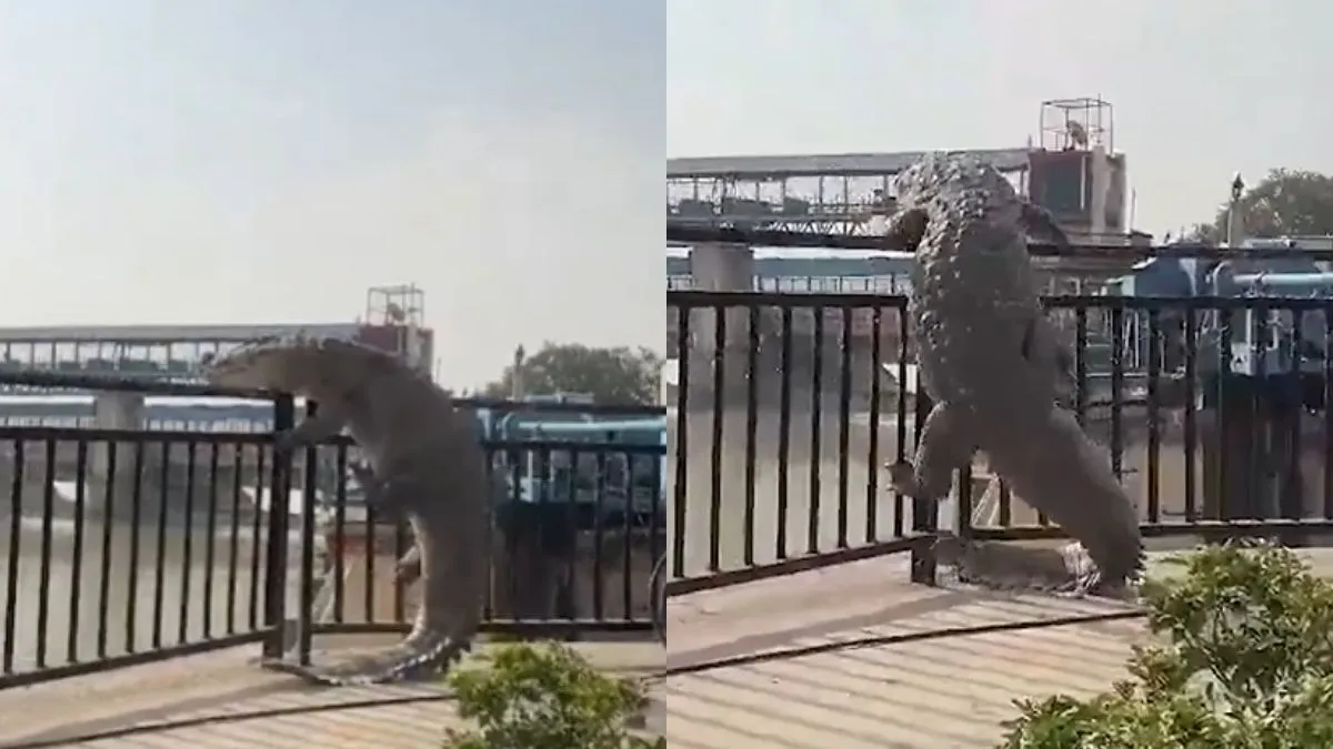 सोशल मीडिया पर एक वीडियो वायरल हो रहा है जिसमें एक बड़ा सा मगरमच्छ किसी नहर के बाहर नजर आ रहा है। वीडियो में दिख रहा है कि वह नहर से बाहर आ गया है और अब ग्रिल को क्रॉस करके फिर से नहर में जाने की कोशिश कर रहा है। इसके लिए वह काफी प्रयास कर रहा है मगर सफल नहीं हो पा रहा है। आपको बता दें कि यह वीडियो बुलंदशहर जिले के नरौरा का है जहां मगरमच्छ नहर से बाहर आ गया। मगर राहत की बात यह है कि जानकारी मिलने के बाद वन विभाग की टीम मौके पर पहुंची और रेस्क्यू करके मगरमच्छ को फिर से नहर में छोड़ दिया।