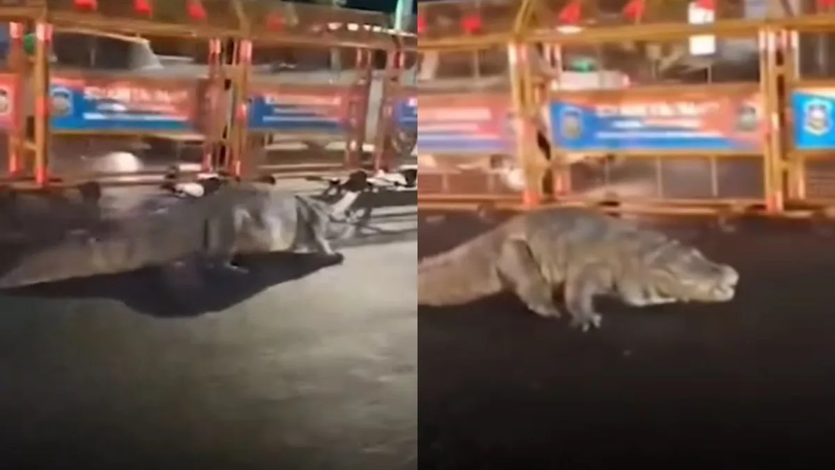 गुजरात की सड़कों पर टहलता दिखा विशालकाय मगरमच्छ, Video हो रहा है वायरल