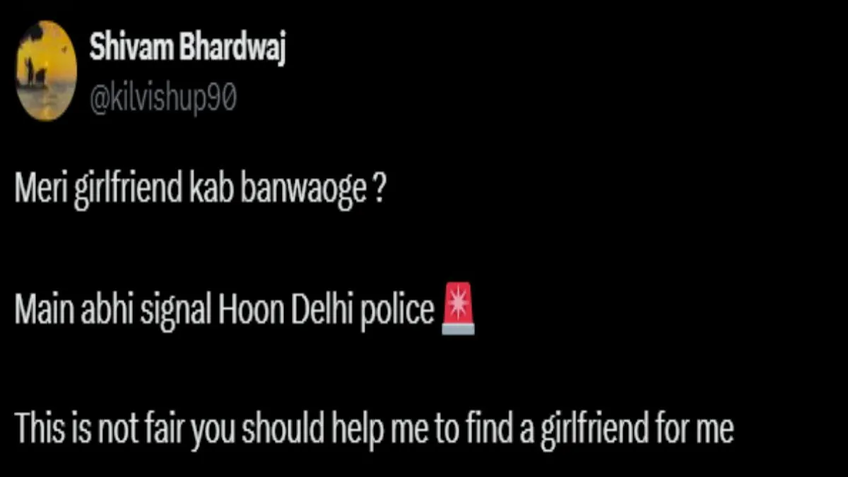 आज सोशल मीडिया पर कई अजब-गजब के पोस्ट वायरल हो रहे हैं। उन्हीं में से एक पोस्ट दिल्ली पुलिस और एक व्यक्ति के बीच बातचीत का है। दिल्ली पुलिस द्वारा World No Tobacco Day पर किए गए पोस्ट के कमेंट सेक्शन में एक शक्स ने दिल्ली पुलिस से गर्लफ्रेंड की डिमांड कर दी। उसने दिल्ली पुलिस को टैग करते हुए पूछा, 'मेरी गर्लफ्रेंड कब बनवाओगे? मैं अभी सिग्नल हूं दिल्ली पुलिस। यह सही नहीं है, आपको मेरी गर्लफ्रेंड खोजने में मदद करनी होगी।' इसमें याद रखने वाली बात यह है कि शख्स ने सिंगल की जगह सिग्नल लिख दिया। आइए अब आपको दिल्ली पुलिस का रिप्लाई बताते हैं। दिल्ली पुलिस ने शख्स को रिप्लाई देते हुए लिखा, 'सर, हम उसे खोजने में आपकी मदद कर सकते हैं (केवल तभी जब वह कभी लापता हो जाए)। सुझाव: यदि आप 'सिग्नल' हैं, तो हम आशा करते हैं कि आप हरे रंग के रहें, लाल रंग के नहीं।'