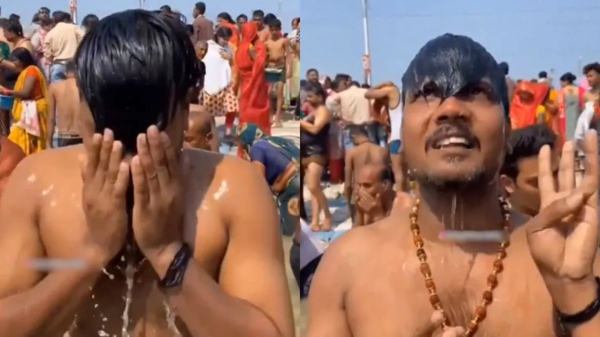 अभी जो वीडियो वायरल हो रहा है वो महाकुंभ का है जहां कई सारे लोग स्नान करते हुए नजर आ रहे हैं। एक शख्स जो वीडियो बनवा रहा है, वो भी डुबकी लगाता है। वो पहली डुबकी अपने मां-बाप के नाम लगाता है। वो दूसरी डुबकी अपनी होने वाली बीवी के नाम की लगाता है। अब वो तीसरी डुबकी इसलिए लगाता है ताकि उसे बीवी सच्ची-सावित्री मिले और पवित्र मिले। इसके बाद वो भगवान से प्रार्थना करता है कि वो उसकी तीसरी वाली मांग पर ज्यादा ध्यान दें। वीडियो को रील के लिए बनाया गया है जो वायरल हो रहा है।