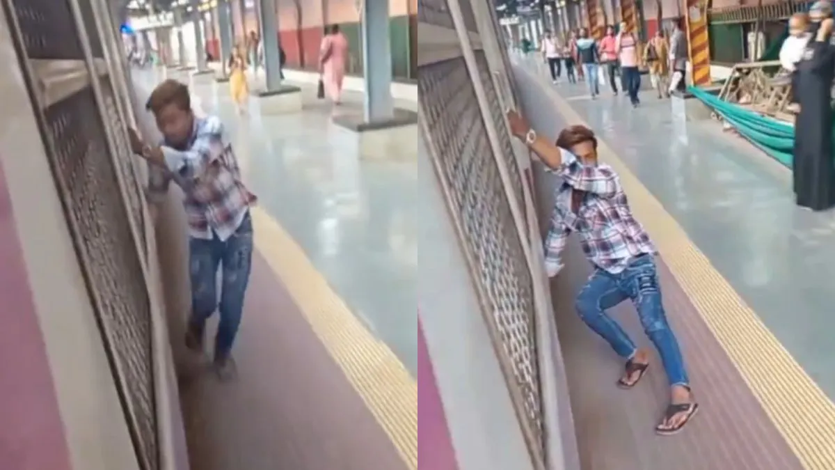 सोशल मीडिया प्लेटफॉर्म पर वायरल हो रहा वीडियो किसी रेलवे स्टेशन का है। वीडियो में नजर आता है कि एक ट्रेन प्लेटफॉर्म से रवाना हो रही है। इस दौरान ट्रेन के संग-संग एक शख्स प्लेटफॉर्म पर चलता है और फिर ट्रेन का हैंडल पकड़कर प्लेटफॉर्म पर खतरनाक स्टंट करने लगता है। शख्स अपने पैरों को तो प्लेटफॉर्म पर ही रखता है मगर ट्रेन के हैंडल को भी पकड़ लेता है। इस तरह वह ट्रेन की रफ्तार में शख्स प्लेटफॉर्म पर स्लिप करने लगता है। इस स्टंट के दौरान उसकी जान भी खतरे में आ सकती थी, मगर उसे अपने जान की चिंता नहीं है।