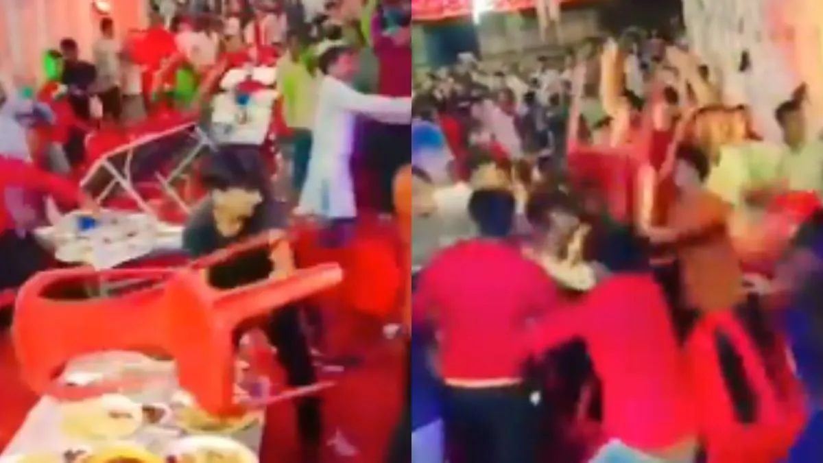 सोशल मीडिया पर वायरल हो रहे वीडियो में आप देख सकते हैं कि कुछ लोग एक दूसरे पर हाथ और मुक्के से हमला कर रहे हैं। कुछ लोग तो कुर्सियां भी चलाकर दूसरों के मार रहे हैं। इस वीडियो को माइक्रो ब्लॉगिंग प्लेटफॉर्म एक्स (पहले ट्विटर) पर @gharkekalesh नाम के पेज ने शेयर किया है। वीडियो के साथ कैप्शन में बताया है कि, 'शादी के दौरान दूल्हा और दुल्हन पक्ष में लड़ाई हो गई क्योंकि मटर पनीर की सब्जी में पनीर का टुकड़ा नहीं था।' वीडियो सोशल मीडिया पर काफी वायरल हो रहा है।