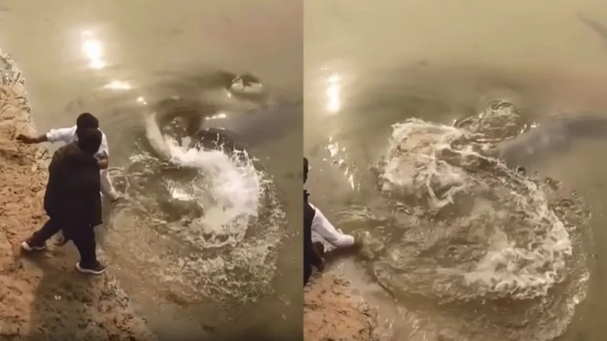 हम जिस वायरल वीडियो की बात कर रहे हैं उसमें नजर आता है कि एक मगरमच्छ किसी नदी के किनारे आया हुआ है। तभी एक बंदा उस मगरमच्छ की पूंछ को पकड़ता है और उसे खींचने लगता है। जब एक हाथ से वो सही से उसे खींच नहीं पाता है तो फिर वो दोनों हाथ लगाकर उसे खींचने लगता है। तभी अचानक मगरमच्छ को एहसास होता है और वो वहां से नदी में आगे भागने लगता है। अब इस पर यकीन कर पाना मुश्किल है कि कोई मगरमच्छ को इस तरह खींचे और मगरमच्छ डर कर भाग जाए। वीडियो AI भी हो सकता है। खैर इसकी पुष्टि तो नहीं हो पाई मगर वीडियो वायरल हो रहा है तो आपको उसकी जानकारी दे दी।