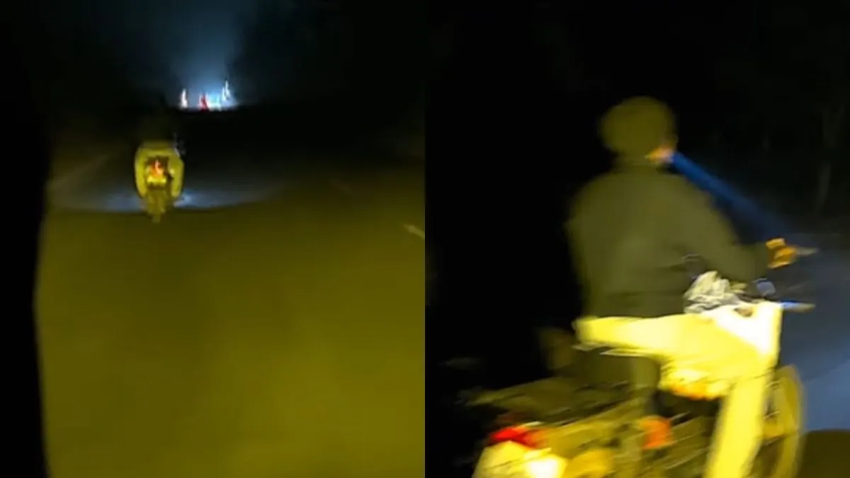 अभी जो वीडियो वायरल हो रहा है वो वैसे तो छोटा सा है मगर बहुत ही अतरंगी है। वीडियो को रात में अपनी बाइक पर जाते शख्स ने बनाया है। वो जिस सड़क से जा रहा था, वहां स्ट्रीट लाइट नहीं है। अब ऐसे में आसानी से रास्ता दिख जाए, उसके लिए एक बंदे ने जो मोपेड पर था, उसने गजब का दिमाग लगाया। उसने एक छोटा सा टॉर्च ऑन किया और अपने दांतों के बीच दबा लिया और वो मोपेड चलाता नजर आया। उसे देखने के बाद शख्स ने वीडियो बना लिया जो अब वायरल हो रहा है।