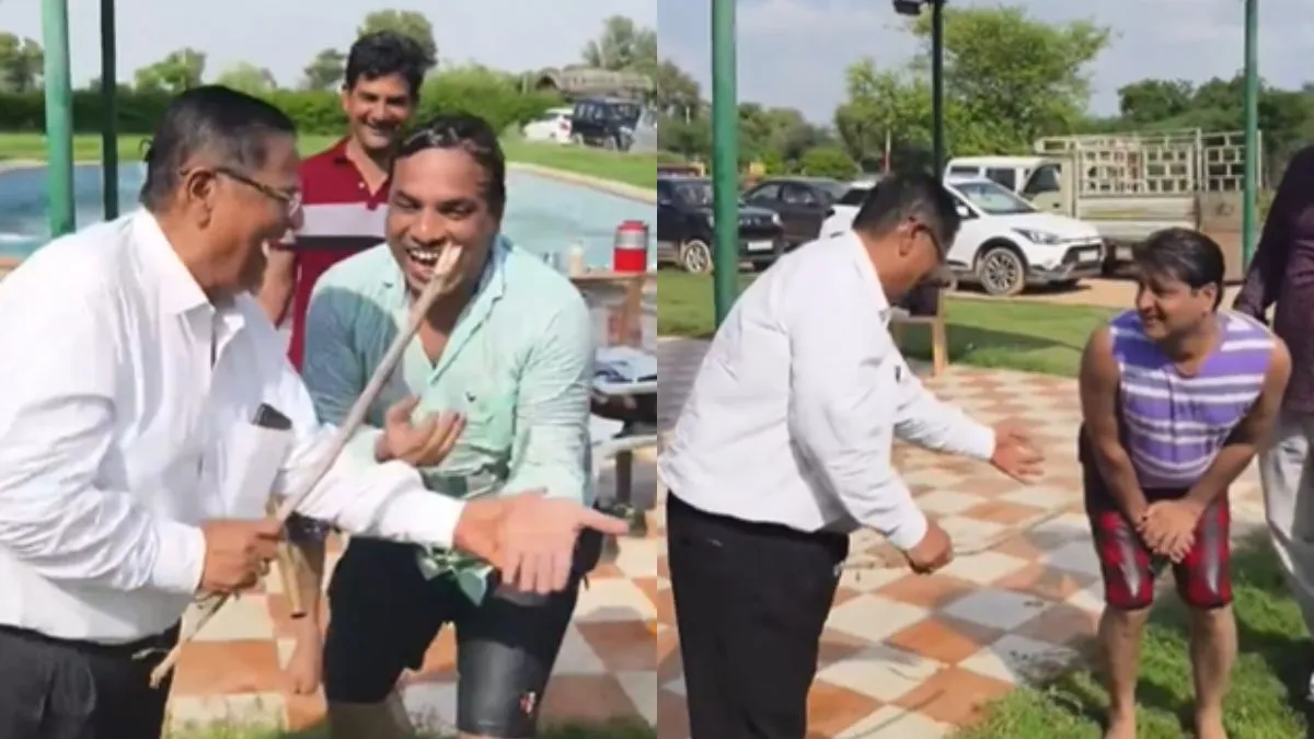 इस वीडियो को माइक्रो ब्लॉगिंग प्लेटफॉर्म एक्स (पहले ट्विटर) पर विकास महतो नाम के शख्स ने अपने अकाउंट से शेयर किया है। वीडियो को शेयर करते हुए इससे जुड़ी जानकारी भी दी है। कैप्शन में लिखा है, ' बीकानेर में 1997 बैच के 10वीं क्लास, बेसिक इंग्लिश स्कूल के छात्रों ने आज पूल पार्टी रखी। अपने गुरु जी रामजी व्यास से फिर चेलों ने प्रतीकात्मक डंडे खा कर पुरानी यादें ताजा की। पहले इसी तरह की व्यवस्था थी पढ़ाई में जो आजकल लुप्त हो गई है। Miss this Dande.' इस वीडियो को 19 अगस्त को पोस्ट किया गया है जो वायरल हो रहा है। खबर लिखे जाने तक वीडियो को 3 लाख 49 हजार से अधिक लोगों ने देख लिया है। वीडियो देखने के बाद लोगों ने भी अपनी प्रतिक्रिया दी है। एक यूजर ने लिखा- आजकल छात्र गुरु जी को पीट दे रहे हैं। दूसरे यूजर ने लिखा- वो भी क्या दिन थे। तीसरे यूजर ने लिखा- गुरु से बढ़कर कुछ नहीं। चौथे यूजर ने लिखा- पुरानी यादें ताजा हो गईं। एक अन्य यूजर ने लिखा- वीडियो देखकर बचपन याद आ गया।