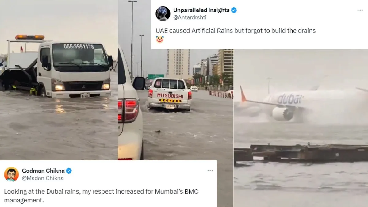 सोशल मीडिया प्लेटफॉर्म पर इस समय दुबई के ही वीडियो वायरल हो रहे हैं जिसमें सड़कों पर पानी भरा हुआ नजर आ रहा है। इन वीडियो को देखने के बाद कुछ लोगों ने दुबई की ड्रेनेज सिस्टम को ट्रोल करना और उसे मुंबई से केंपयर करना शुरु कर दिया। एक यूजर ने पोस्ट करते हुए लिखा- UAE ने आर्टिफिशियल बारिश तो कराई लेकिन नालियां बनाना भूल गया। वहीं दूसरे यूजर ने दुबई का वीडियो शेयर करते हुए लिखा- दुबई की बारिश को देखकर मेरे मन में मुंबई के बीएमसी प्रबंधन के प्रति सम्मान बढ़ गया।