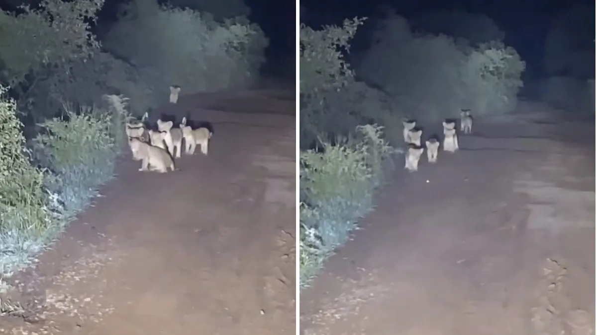 सड़क पर घूमता दिखा शेरों का झुंड