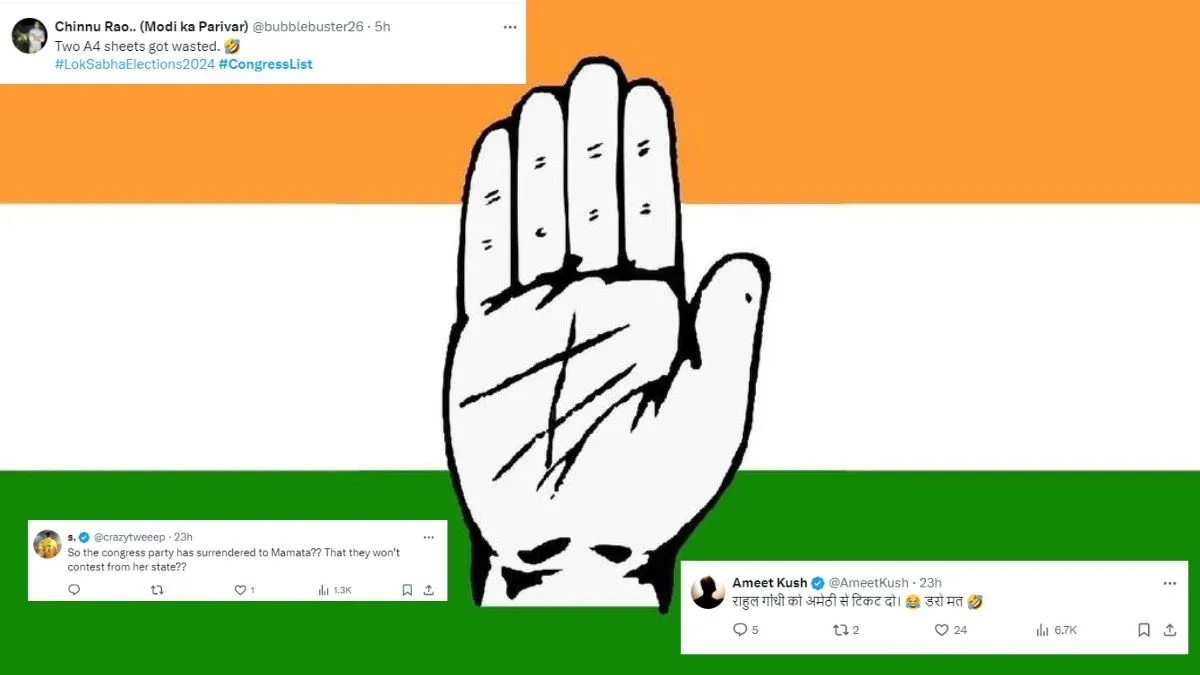 लोकसभा चुनावों में अब ज्यादा समय नहीं बचा है। इसके लिए सभी पार्टियां तैयार हो गई हैं और बारी-बारी चुनावों के लिए अपने उम्मीदवारों की लिस्ट भी जारी कर रही हैं। 12 मार्च 2023 को कांग्रेस ने अपन 43 उम्मीदवारों की दूसरी सूची भी जारी कर दी। कांग्रेस पार्टी की सूची जैसे ही सोशल मीडिया प्लेटफॉर्म पर आई, लोगों ने मजे लेने शुरू कर दिए। लिस्ट के नीचे कमेंट सेक्शन में लोगों ने मजेदार कमेंट्स की बौछार लगा दी। कुछ लोगों ने लिस्ट को को रिट्विट करते हुए भी मजेदार बातें लिखी। आइए आज हम आपको इस लिस्ट और लिस्ट के नीचे किए गए मजेदार कमेंट्स के बारे में बताते हैं।