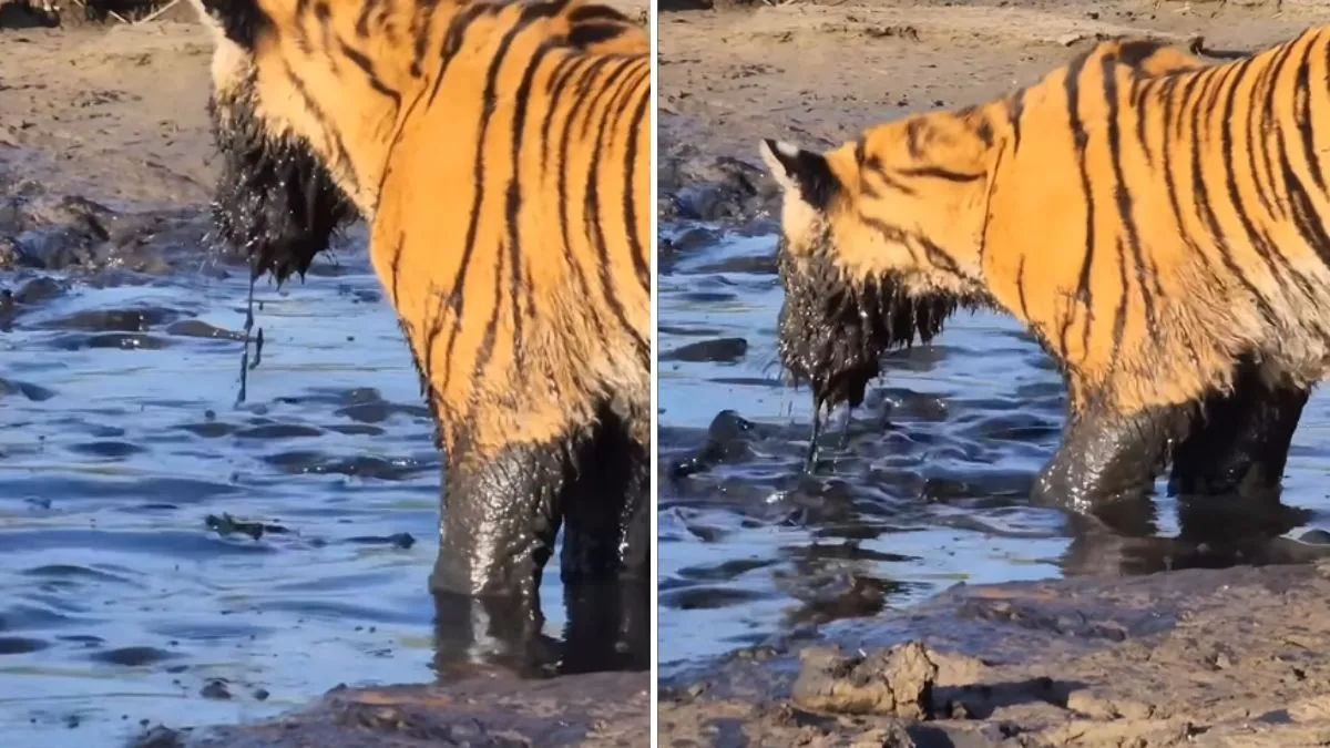 सोशल मीडिया पर वायरल हो रहे हैं, इस वीडियो में देखा जा सकता है कि एक बाघ कीचड़ में दिखाई दे रहा है। उसके पैर और मुंह में पूरी तरह से कीचड़ लगा हुआ है। वीडियो में साफ तौर पर देखा जा सकता है कि वो कीचड़ में मछली खोजने में लगा है। वो कीचड़ में मछली को पकड़ भी लेता है। इस वीडियो को देखने के बाद चला कि बाघ मछलियों का भी शिकार करते हैं। कीचड़ में मछलियों को देखा भी जा सकता है। इस वीडियो को देखने के बाद ये भी क्लियर हो गया कि बाघ अन्य जानवर के अलावा मछली भी खाते हैं।