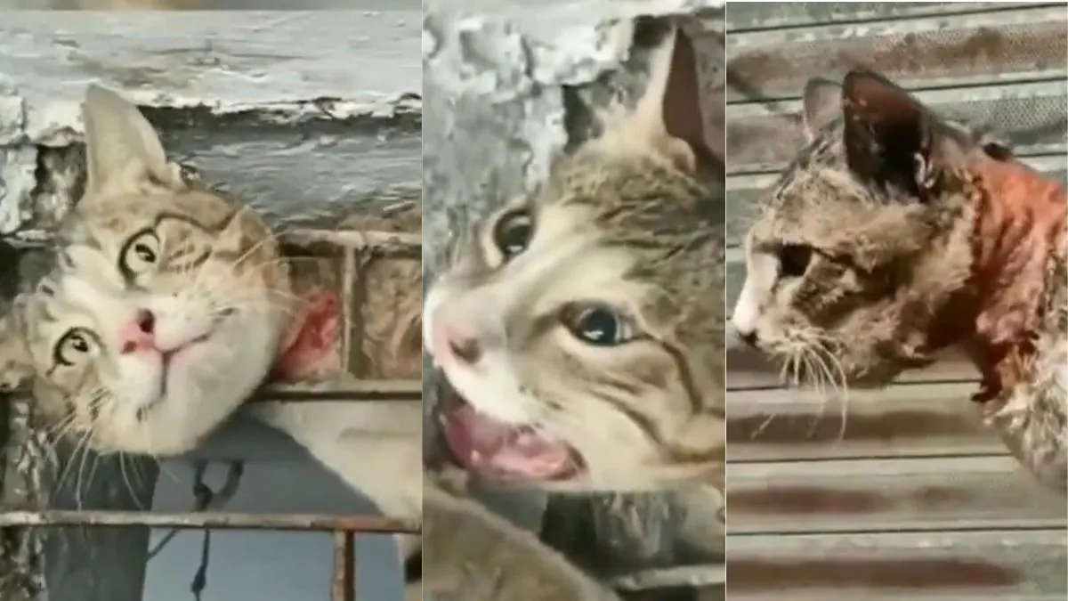 हम आपके साथ जो वीडियो शेयर कर रहे हैं उसमें एक बिल्ली दिख रही है जिसका सिर धातु की खिड़की की ग्रिल में फंस गया है। वह खुद को छुड़ाने की कोशिश करते हुए दर्द से कराह रही है। वीडियो देखने से साफ पता चल रहा है कि वो दर्द से तड़प रही है। इस बीच, कुछ लोग बिल्ली को छुड़ाने की जिम्मेदारी लेते हैं। उनमें से एक जानवर को गर्दन से पकड़ता है और बिल्ली को चिंगारी और शोर से बचाते हुए ग्रिल के एक हिस्से को काटने के लिए एक आरी मशीन का उपयोग करता है। इसके बाद बिल्ली आजाद हो जाती है लेकिन उसके गर्दन पर गहरा घाव बन जाता है। वहां के लोग घाव पर कुछ मरहम लगाते हैं। बिल्ली को आराम के लिए छोड़ देते हैं। इसके बाद दूध भी पिने के लिए देते हैं।