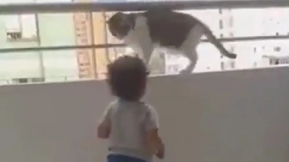 बालकनी में खड़ा था बच्चा, मां बनकर बिल्ली ने रखा बेटे जैसा ख्याल, देखें Video