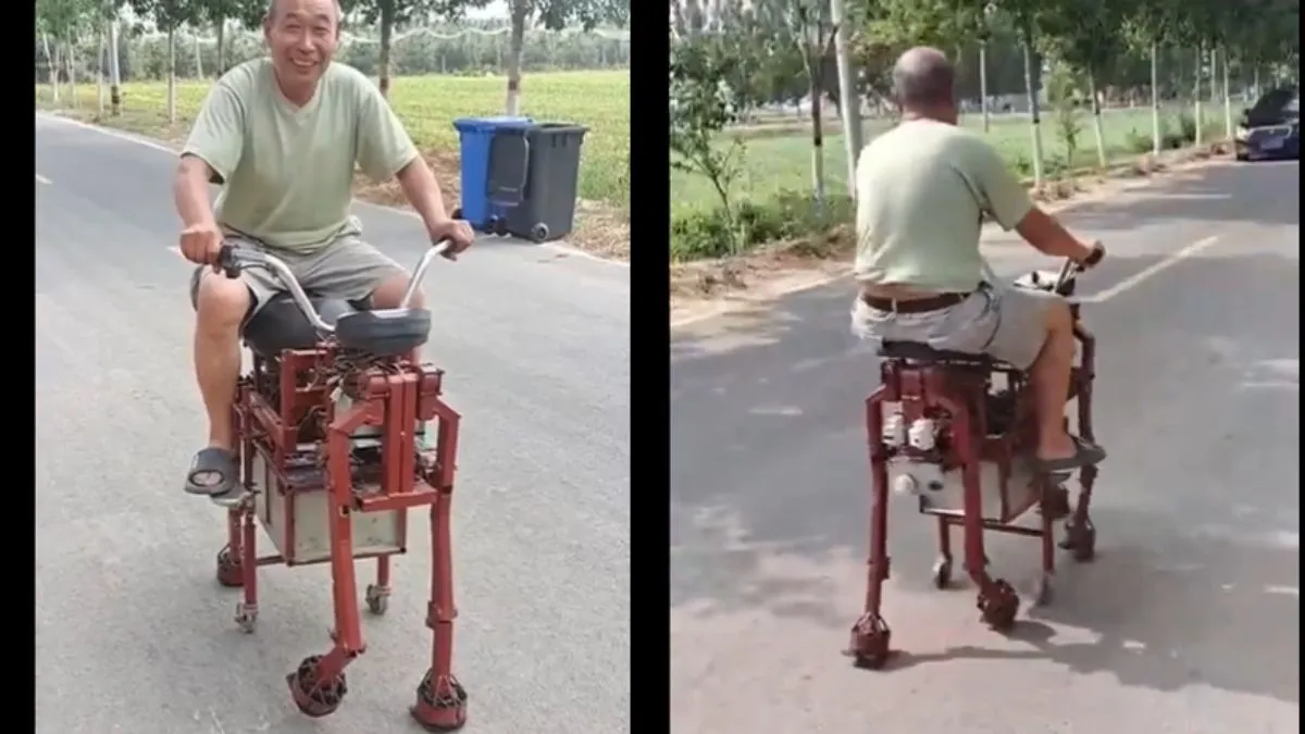 सोशल मीडिया पर वायरल हो रहे इस वीडियो में आप देख सकते हैं कि एक बुजुर्ग शख्स एक मशीन पर बैठा है। उस मशीन के 4 पैर हैं और बीच में दो पहिए लगे हुए हैं। इस मशीन के ऊपर एक सीट भी लगाई गई है जिसपर इंसान बैठ सकता है और हैंडल को पकड़कर उस मशीन को कंट्रोल कर सकता है। हम इस मशीन को बाइक नहीं कह सकते क्योंकि ये एक जानवर की तरह चलती है मगर किस जानवर की तरह, ये समझ नहीं आता है। इस वीडियो को ट्विटर पर @Tansu YEGEN नाम के एक यूजर ने शेयर किया है। वीडियो के कैप्शन में लिखा गया है कि चीन के एक इंजीनियर ने अपने गैराज से स्पेयर पार्ट्स का उपयोग करके एक यांत्रिक गधा बनाया और उसकी सवारी भी की।