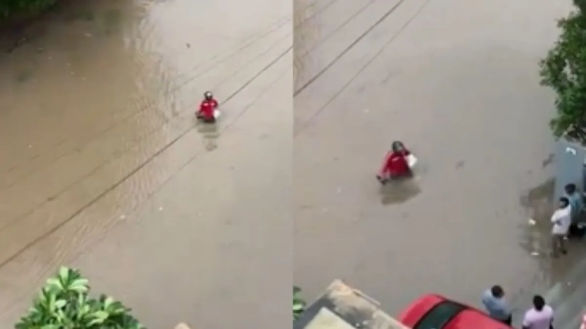 एक डिलीवरी बॉय का वीडियो वायरल हो रहा है जो घुटने भर पानी में कस्टमर को खाना डिलीवर करने पहुंचा है। वीडियो को अहमदाबाद का बताया जा रहा है।
