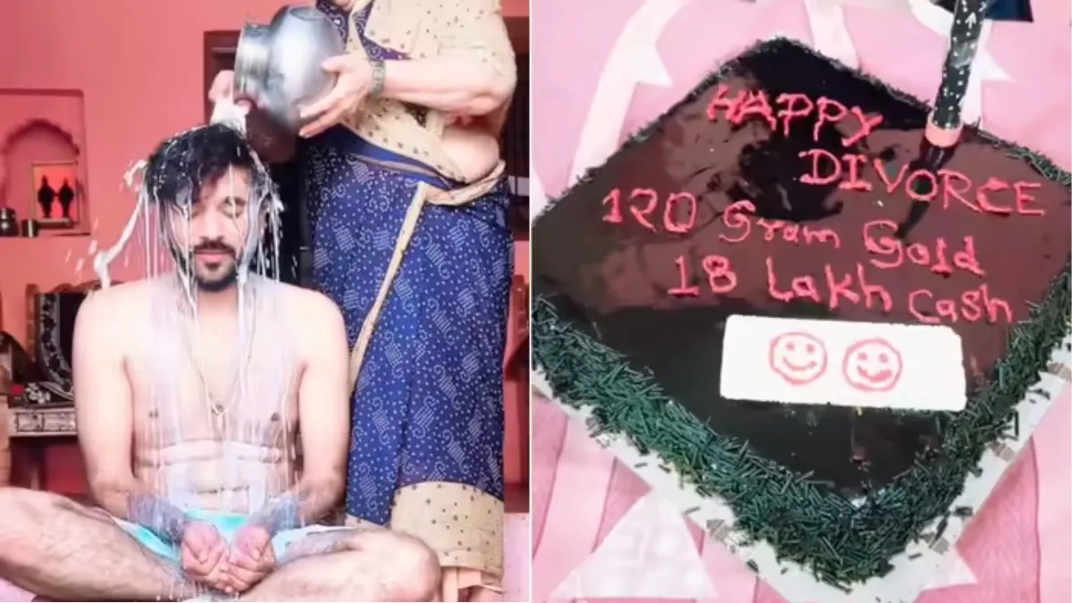इस वीडियो को इंस्टाग्राम पर @iamdkbiradar नामक हैंडल से शेयर किया गया है। वीडियो में आप देख सकते हैं कि, पहले शख्स को एक महिला (संभवत: युवक की मां) दूध और जल से नहलाती हैंं। उसके बाद शख्स उठकर तैयार होने के लिए चला जाता है और नए कपड़ों को अलमारी ने निकालकर उनको पहनता है। जूते वगैरह पहनकर जब शख्स तैयार होता है तो फिर उसके बाद वो केक काटने के लिए बैठता है। केक पर लिखा होता है 'Happy Divorce, 120 gram gold, 18 lakh cash.' वीडियो में केट काटते हुए शख्स बेहद खुश नजर आता है। इस वीडियो को अब तक हजारों लोगों ने देखकर लाइक किया है।