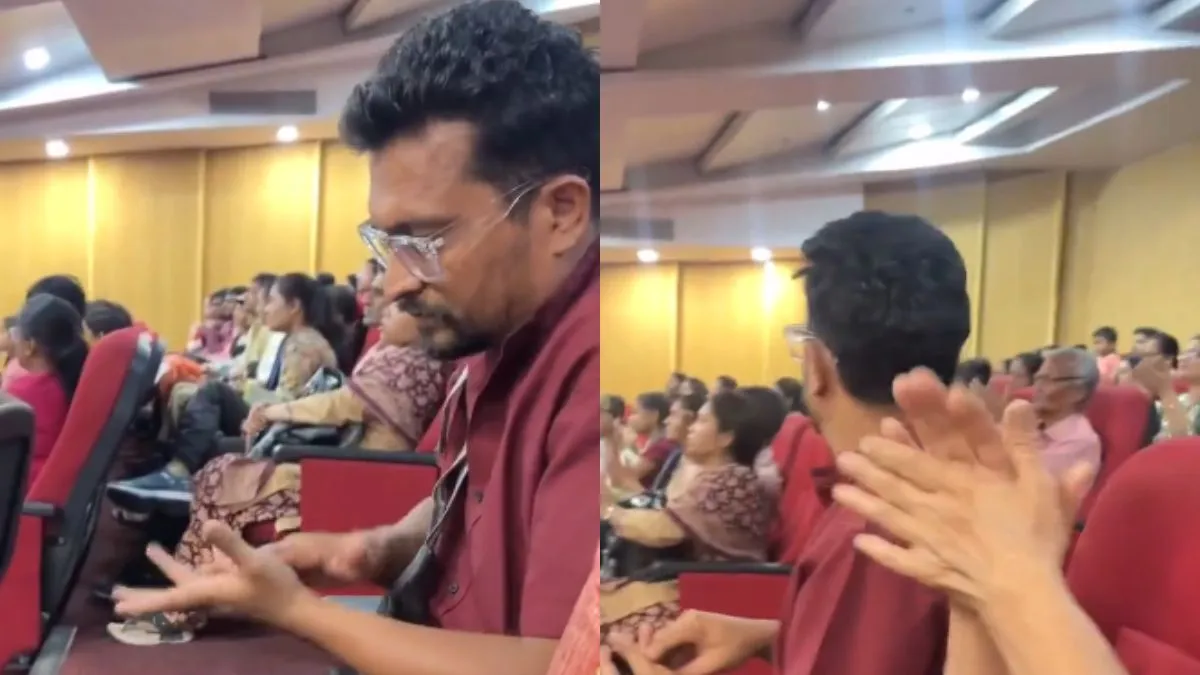अभी जो वीडियो वायरल हो रहा है उसमें नजर आ रहा है कि कई सारे लोग किसी ऑडिटोरियम में बैठे हुए हैं और उनकी नजरें स्टेज की तरफ है। इसी बीच एक शख्स नजर आता है जो अपने हाथों में खैनी मल रहा है। वैसे तो देखकर ऐसा लगता है कि वो खैनी मलने की एक्टिंग कर रहा है और बस रील बनाने के लिए ऐसा कर रहा है। खैर जो भी हो, वो खैनी को मलने के बाद खैनी को दूसरे हाथ से ठोकने लगता है और लोगों को लगता है कि वो किसी बात को सुनकर ताली बजा रहा है। अब उस शख्स के साथ दूसरे लोग भी ताली बजाने लगते हैं और वो खुद हैरान हो जाता है कि ये क्या हो रहा है।
