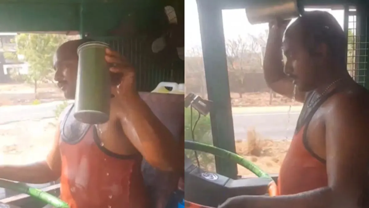 सोशल मीडिया पर एक वीडियो वायरल हो रहा है जिसमें एक शख्स ट्रक चलाते हुए नजर आ रहा है। वायरल वीडियो में नजर आ रहे ड्राइवर को शायद गर्मी लग रही होगी इसलिए वह अपने शरीर पर पानी डालना शुरू कर देता है। शख्स ने अपने पास बाल्टी में पानी रखा हुआ है और हर कुछ देर में ड्राइवर उस बाल्टी में से पानी निकालकर अपने शरीर पर डाल रहा है। पूरे वीडियो में वह ऐसा ही करता हुआ नजर आया। वीडियो सोशल मीडिया पर काफी वायरल हो रहा है।