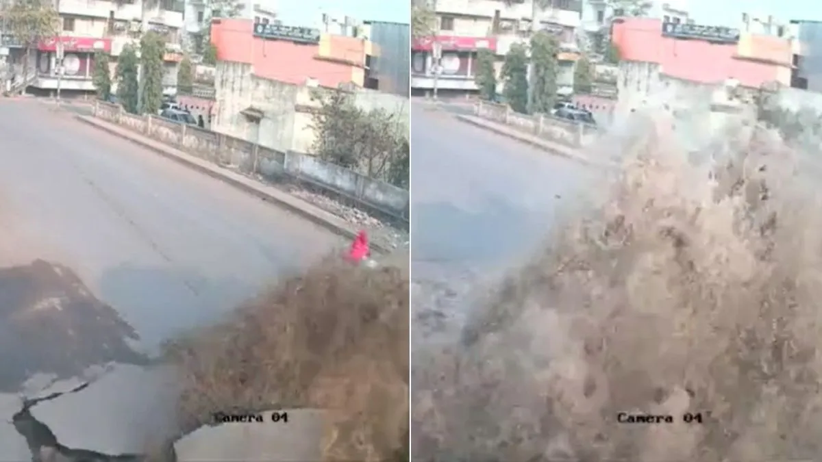 घटना महाराष्ट्र के यवतमाल की बताई जा रही है। यहां पर शहर के नीचे से गई एक पाइप लाइन फट गई और पानी इतनी तेजी से बाहर निकला कि वहां की जमीन फट गई और सड़क का एक बड़ा सा हिस्सा उखड़कर बाहर आ गया। वीडियो में आप देख सकते हैं कि सड़क पर एक स्कूटी सवार महिला ड्राइव कर के आ रही है तभी सड़क से पानी सैलाब बनकर निकलता है। जिससे महिला की स्कूटी फिसलकर दूर जा गिरती है। इस घटना में महिला गंभीर रूप से घायल हो गई। गनीमत रही कि वह किसी अन्य वाहन के चपेट में नहीं आई।