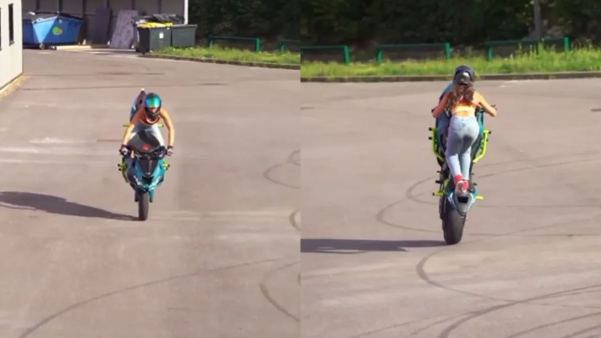बाइक स्टंट के वीडियो सोशल मीडिया पर अक्सर वायरल होते रहते हैं। कुछ लोग तो इतना खतरनाक स्टंट दिखाते है जिन्हें देखने के बाद जान हलक में आ जाती है। ऐसा ही एक लड़की का वीडियो वायरल हो रहा है जिसमें उसने बाइक से स्टंट का ऐसा खेल दिखाया कि लोगों की आंखें फटी की फटी रह गईं। वीडियो को देखने के बाद कई लोगों ने कहा कि उन्होंने आज तक ऐसा खतरनाक स्टंट नहीं देखा था। कई लोग तो इस बात से हैरान हैं कि ऐसी खतरनाक स्टंट कोई लड़की भी कर सकती है।