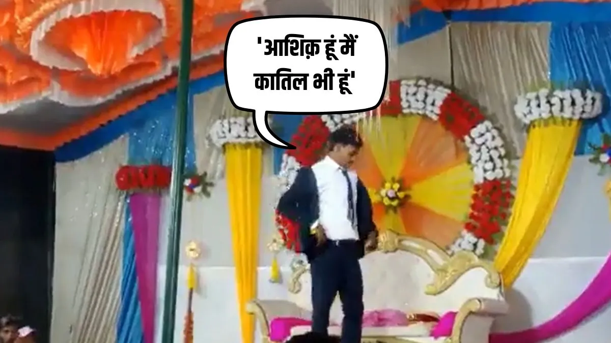 सोशल मीडिया पर वायरल वीडियो में आप देख सकते हैं कि एक दूल्हा नजर आ रहा है। इस वीडियो में कुछ कह रहा है, ऐसा लग रहा है कि वो गुस्से में काफी है। इस वीडियो में युवक कहता है, 'क्या करते हो तुम, सुनो मरते दम तक लेकर लड़की को लेकर जाऊंगा। युवक आगे कहता है, मरते दम तक यहां से मांग भर कर लड़की को ले जाऊंगा। इसके बाद जो युवक कहता है, उसे सुनने के बाद शायद आप अपनी हंसी नहीं रोक पाए। युवक कहता है कि आशिक हूं मैं कातिल भी हूं और सबके दिलों में शामिल भी हूं याद रखना। वो आगे कहता है कि आशिक हूं मैं कातिल भी हूं और सबके दिलों में शामिल भी हूं, वादों से कभी मुकरता नहीं, मरने से कभी डरता नहीं।