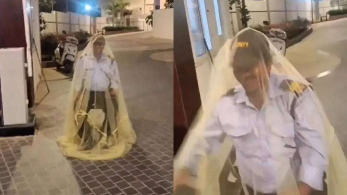 जो वीडियो वायरल हो रहा है उसमें एक सिक्योरिटी गार्ड नजर आ रहा है और उसने मच्छर से बचने के लिए अनोखा जुगाड़ किया है। वो सिक्योरिटी गार्ड कुर्सी पर बैठा हुआ है और मच्छर से बचने के लिए उसने मच्छरदानी को अपने ही ऊपर ओढ़ लिया है। एक महिला ने देखा तो उसका वीडियो बना लिया जो अब सोशल मीडिया पर काफी वायरल हो रहा है। अब उसका जुगाड़ कितना सफल होगा, यह तो वही जाने। कई दूसरे लोगों ने भी उस वीडियो को अपने-अपने अकाउंट से पोस्ट किया है।