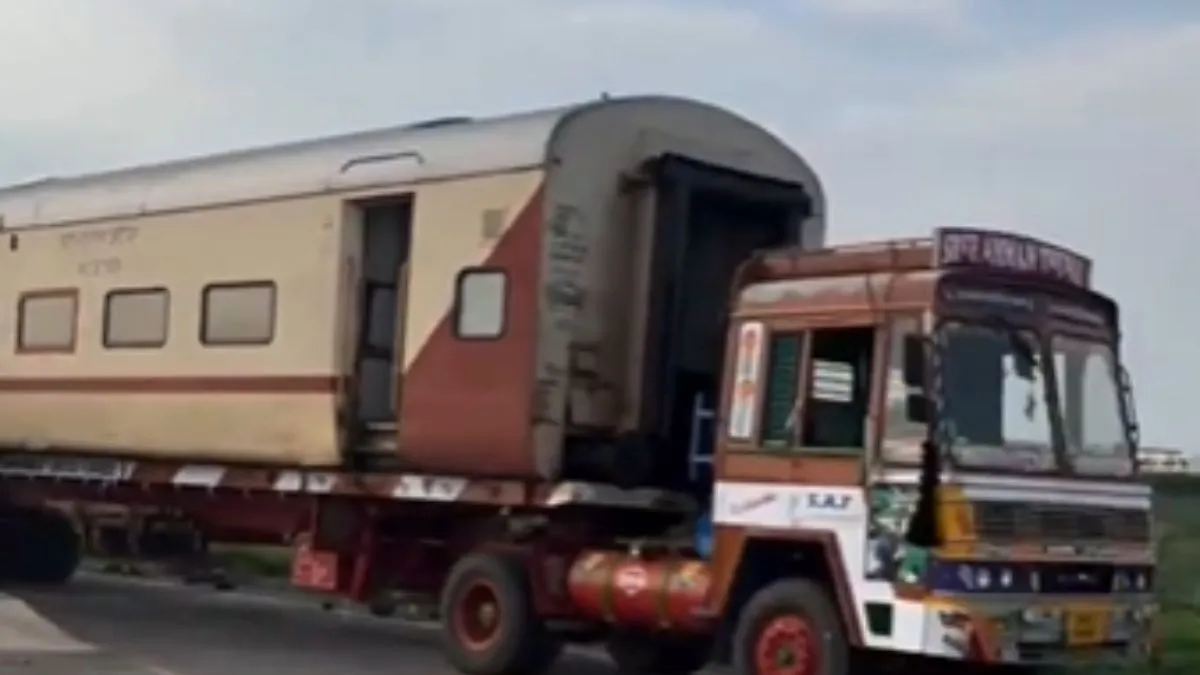हम जिस वायरल वीडियो की बात कर रहे हैं उसमें एक ट्रक जाता हुआ नजर आ रहा है। ये ओपन प्लेटफॉर्म वाला ट्रक है जहां पीछे बड़े कंटेनर आदि चीजें लोड होती हैं। अब इस ट्रक पर पीछे एक ट्रेन का डिब्बा लदा हुआ है। अब वो डिब्बा लदा हुआ है या फिर उसे पीछे फिक्स कर दिया गया है, यह तो नहीं पता मगर वीडियो इसी सोच के साथ वायरल हो रहा है कि ट्रक के पीछे उस डिब्बे को फिक्स कर दिया गया है। वीडियो कब और कहां का है, इसकी जानकारी नहीं दी गई है मगर अब वायरल हो रहा है।