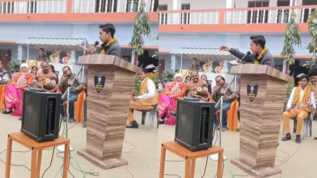 आप यह तो जानते ही होंगे कि मंच पर कोई भी जब जाता है और अपना भाषण या कुछ बात कहता है तो उससे पहले वहां आए लोगों और मंच पर बैठे मेहमानों का अभिवादन करता है। इस लड़के ने भी ऐसा ही किया मगर ये कुछ ज्यादा ही डीप चल गया। आइए आपको बताते हैं कि उसने किसे-किसे प्रणाम किया। वो बोलता है, 'मैं सम्मानित मंच की धूल को प्रणाम करता हूं, सम्मानित मंच की धूल की चरणों के कण-कण को प्रणाम करता हूं, सम्मानित मंच के धूल के कण-कण के अणुओं को प्रणाम करता हूं।' आपको बता दें कि उसके प्रणाम का सिलसिला यहीं नहीं रुकता है। आप उसका वीडियो देखिए।