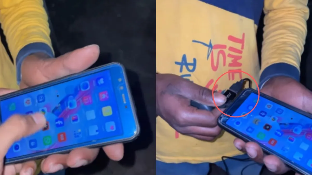 जी हां, दरअसल, वीडियो में यह देखा जा सकता है कि एक लड़के के हाथ में टूटा हुआ फोन दिख रहा है। फोन का स्क्रीन बिल्कुल भी काम नहीं कर रहा है। लेकिन लड़का उस फोने में एक माउस का केबल लगा देता है। केबल के लगाते ही माउस में लाइट जलने लगती है। जैसे कंप्यूटर मे माउस लगाते ही लाइट जलने लगती है ठीक वैसे ही लड़के के फोन में भी माउस के लगाते ही माउस काम करने लगता है। जिसके बाद फोन का स्क्रीन काम करने लगता है। माउस लगाने के बाद से यह फोन अब मोबाइल फोन नहीं बल्कि एक कंप्यूटर की तरह काम करने लगता है। यह देख वहां आस-पास खड़े लोग हैरान हो जाते हैं।