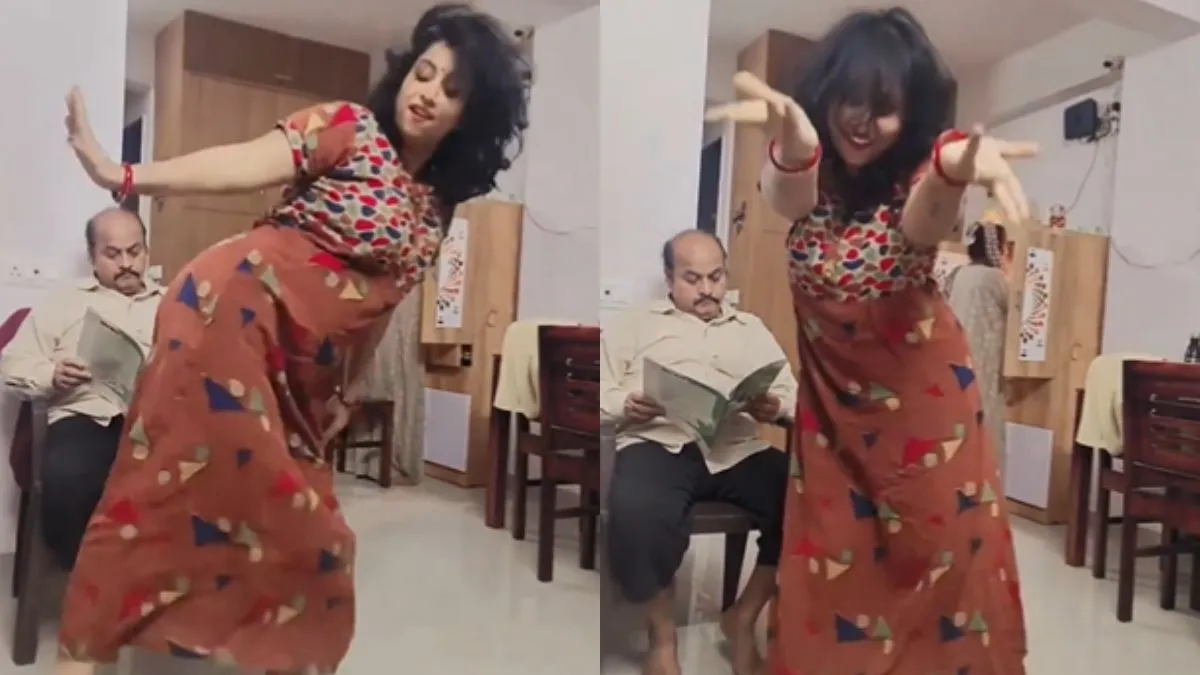 वायरल वीडियो में आप देख सकते हैं कि महिला का पति पीछे कुर्सी पर बैठा हुआ है। पति के हाथों में एक पेपर है जिसे वह पढ़ रहा है। इधर, महिला कैमरे के सामने रील बनाने के लिए डांस कर रही है। महिला स्त्री 2 के फेमस सॉन्ग 'आज की रात...' पर डांस करती हुई नजर आ रही है। डांस करते हुए महिला तमन्ना भाटिया के स्टेप्स को कॉपी करने की कोशिश कर रही है। इस दौरान वह अपनी कमर हिलाते हुए बेतरतीब ढंग से डांस कर रही है। हालांकि महिला पूरी कशिश कर रही है कि वह तमन्ना भाटिया की तरह ही डांस करे लेकिन वह ऐसा कर नहीं पाती है।