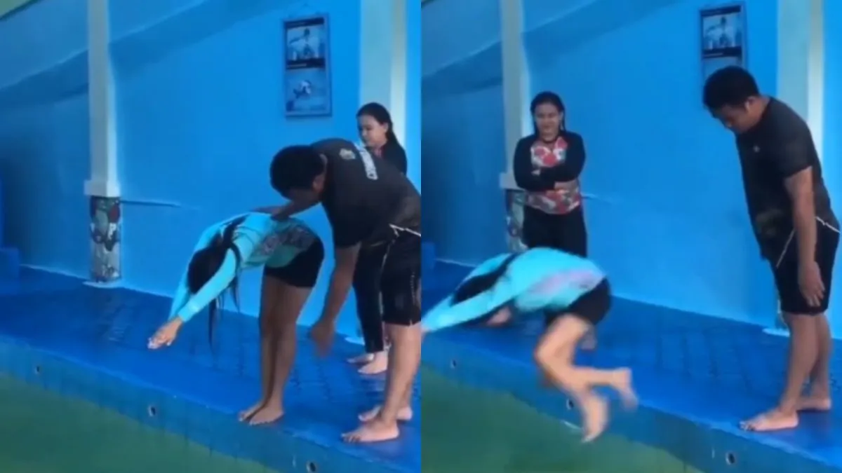 अभी जो वीडियो वायरल हो रहा है उसमें आप देख सकते हैं कि एक स्विमिंग पूल के पास कुछ लोग खड़े हैं। एक इंसान स्विमिंग के लिए पोस्चर बनाता है यानी शरीर को सही आकार में लाता है और फिर स्विमिंग के लिए कूद जाता है। उसके अलावा आपको दिखेगा कि एक ट्रेनर लड़की के साथ खड़ा है और वो उसको पोस्चर बनाने में मदद कर रहा है। जैसे ही उस लड़की का पोस्चर सही हो जाता है, ट्रेनर उसे पूल में कूदने को कहता है। इसके बाद लड़की जिस तरह से पूल में कूदती है, उसे देखने के बाद आप हंसी नहीं रोक पाएंगे। आप वीडियो में खुद देख लीजिए।
