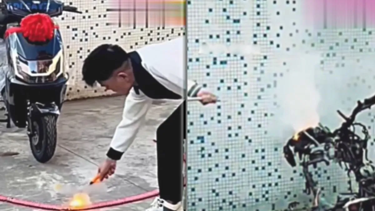 इस दुनिया में ऐसा कोई शख्स नहीं होगा जो कुछ नया खरीदे तो उसे खुशी ना हो। जब भी इंसान अपने लिए कुछ नई चीज खरीदता है तो अपने मुताबिक उसकी खुशी भी जाहिर करता है। इसी तरह एक शख्स ने नई स्कूटी खरीदी तो खुशी मनाने के लिए उसके आगे पटाखे रखकर जला दिए। पटाखों में आगे लगाने के कुछ सेकंड बाद ही पटाखे फूटने लगे। वीडियो में कुद देर का गैप देखकर दिखाया जाता है कि वह स्कूटी जल गई और उसका मालिक दुखी मन से आग को बुझा रहा है। वीडियो सोशल मीडिया पर काफी वायरल हो रहा है।
