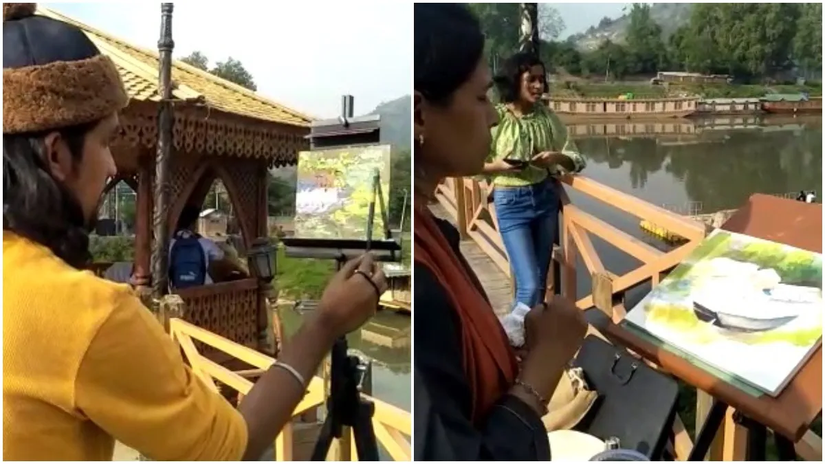 कश्मीर की विशिष्ट सुंदरता से प्रेरित होकर कलाकारों ने इसे अपने कैनवस पर उतारा। बर्फ से ढके पहाड़ों और नीली झीलों से लेकर ऊंचे हरे देवदार के पेड़ों तक, उनके द्वारा चित्रित लुभावने परिदृश्य आपको मंत्रमुग्ध कर देंगे। उन्होंने जगह की शांति और प्राचीन सुंदरता को उपयुक्त रूप से चित्रित किया।