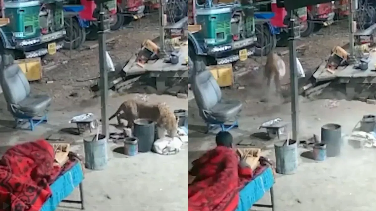 इंडिया टीवी से जुड़े संवाददाता अतुल सिंह की रिपोर्ट के मुताबिक, यह घटना पुणे के अहमदनगर-कल्याण हाइवे पर स्थित एक गैराज की है। घटना 15 मई की देर रात दो बजे की बताई जा रही है। हादसे के वक्त गैराज मालिक का बेटा अपने पालतू कुत्ते के पास में ही खाट पर सो रहा था। गनीमत रही कि तेंदुए ने उस युवक के ऊपर हमला नहीं किया और कुत्ते को ही निपटाकर चलते बना। कुत्ते की चीख सुनकर गैराज मालिक का बेटा जग गया लेकिन जब तक वह कुछ समझ पाता उससे पहले तेंदुआ कुत्ते को लेकर फरार हो गया। वीडियो में आप देख सकते है कि कुत्ते के पास सो रहे शख्स की नींद टूटते ही उसकी जान हलक में ही अटक गई है उसे कुछ भी समझ में नहीं आ रहा कि आखिर वह करे तो क्या करे। न वह भाग सकता है और ना ही वह तेंदुए को वहां से भगा सकता है। बंदे की किस्मत अच्छी थी जो तेंदुए ने उसे बख्श दिया।