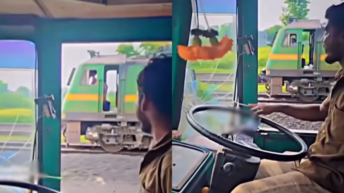 अभी जो वीडियो वायरल हो रहा है उसमें नजर आता है कि एक शख्स बस या ट्रक को चला रहा है। वहीं सड़क के बगल में रेलवे की ट्रैक भी है जिसपर एक ट्रेन चलते हुए नजर आ रही है। अब आप सभी ट्रेन की रफ्तार तो जानते ही होंगे। वीडियो में नजर आता है कि बस/ट्रक भी उस ट्रेन को कड़ी टक्कर दे रही है और एक सेकंड के लिए वो वाहन ट्रेन से आगे निगल जाती है। इसके बाद वो ड्राइवर स्पीड शायद कम कर देता है। वीडियो अभी सोशल मीडिया पर वायरल हो रहा है।