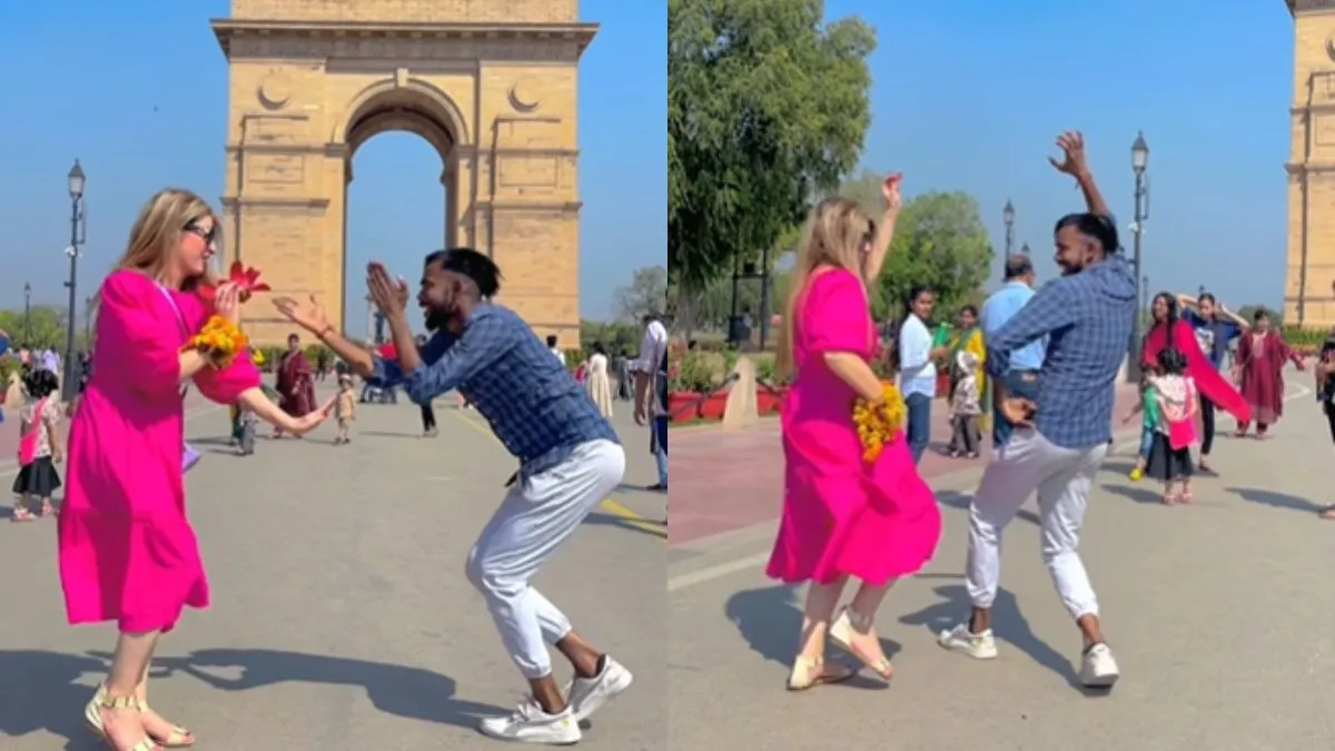 सोशल मीडिया पर एक वीडियो वायरल हो रहा है जिसमें एक लड़का इंडिया गेट के सामने डांस करता हुआ नजर आ रहा है। लेकिन वह अकेले नहीं एक रसियन लड़की के साथ डांस कर रहा है।