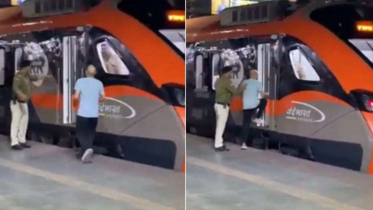 Viral Video : वंदे भारत एक्सप्रेस भारत की सबसे तेज स्वदेशी, सेमी-हाई-स्पीड ट्रेन है जो 160-180 किमी प्रति घंटे की रफ्तार से चल सकती है। ये ट्रेनें प्रमुख स्टेशनों पर अक्सर सिर्फ दो मिनट के छोटे हॉल्ट के लिए जानी जाती हैं। इनके दरवाजे ऑटोमेटिक हैं और ठहराव के बाद तुरंत बंद हो जाते हैं। ये बातें जानते हुए भी कुछ यात्री जानबूझकर लापरवाही कर देते हैं। ऐसा ही कुछ कोलकाता के हावड़ा रेलवे स्टेशन पर देखने को मिला। यहां पर एक व्यक्ति चाय पीने के लिए वंदे भारत स्लीपर ट्रेन से उतरा इसके बाद जो कुछ हुआ सोशल मीडिया पर तत्काल सभी का ध्यान खींचा।