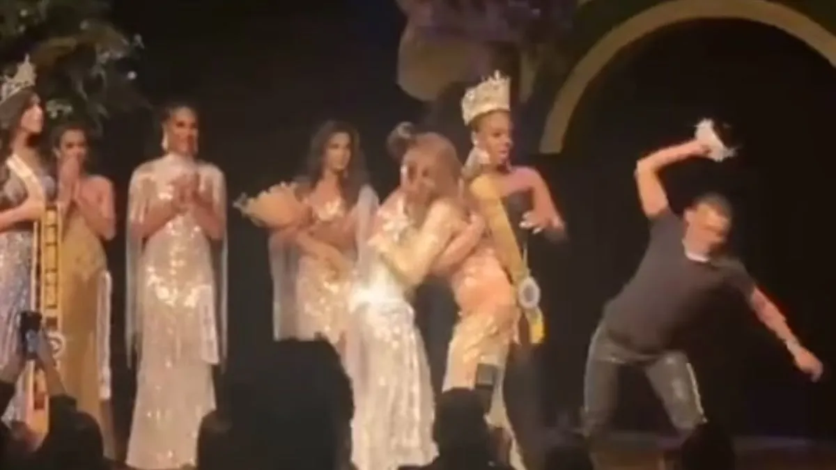 मेल ऑनलाइन की रिपोर्ट के अनुसार, 'Miss Gay Mato Grosso 2023' कॉन्टेस्ट में दूसरे स्थान पर आईं नथाली बेकर के पति को गुस्सा आ गया और वह स्टेज पर चढ़कर विजेता इमानुएली बेलिनी के सिर से क्राउन उतार कर उसे जमीन पर फेंक दिया। घटना उस वक्त की है जब विजेता और उप विजेता एक दूसरे से गले मिल रही थी। इसके बाद वह अपनी पत्नी के बाल खींचते हुए उसे वहां से जबरदस्ती ले गया। शख्स का कहना था कि उसकी पत्नी यहां पर मौजूद सभी प्रतिभागियों से खूबसूरत है।