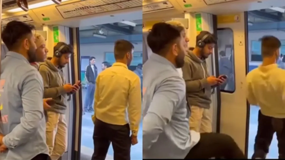 सोशल मीडिया पर वायरल हो रहा वीडियो दिल्ली मेट्रो के भीतर का है। वीडियो में आप देख सकते हैं कि एक शख्स गेट पास खड़े होकर अपनी कमर हिला रहा है। उसके पीछे उसका एक दोस्त खड़ा और दूसरा दोस्त कैमरे में रिकॉर्ड कर रहा है। मेट्रो के गेट जैसे ही बंद होने वाले होते हैं, पीछे खड़ा दोस्त दूसरे दोस्त को लात मारता है और वह मेट्रो के बाहर चला जाता है। इसके तुरंत बाद दरवाजा बंद हो जाता है।