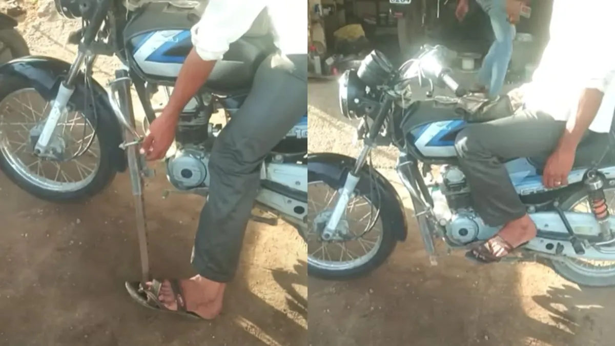 भारत में जुगाड़ की कोई कमी नहीं है। आए दिन सोशल मीडिया पर कुछ ना कुछ जुगाड़ वाले वीडियो वायरल होते रहते हैं। हाल में एक वीडियो फिर से वायरल हो रहा है जिसमें एक शख्स का जुगाड़ देखकर लोग हैरान रह गए। दरअसल, बंदे ने अपनी खोपड़ी का इस्तेमाल कर के देसी जुगाड़ से बाइक का साइड स्टैंड बनाया है। यह स्टैंड ऐसा है कि इसके होते हुए आपको मेन स्टैंड की जरूरत नहीं पड़ेगी। इस स्टैंड से एक फायदा ये भी है कि आप इसे बाइक पर बैठे-बैठाए लगा लेंगे और उसे उतार भी लेंगे। उससे भी अच्छी चीज ये है कि ये बाइक तिरछी नहीं होगी और ना ही गिरने का डर सताएगा। अब आइए इस जुगाड़ का वीडियो आपको दिखा देते हैं कि आखिर ये काम कैसे करता है।