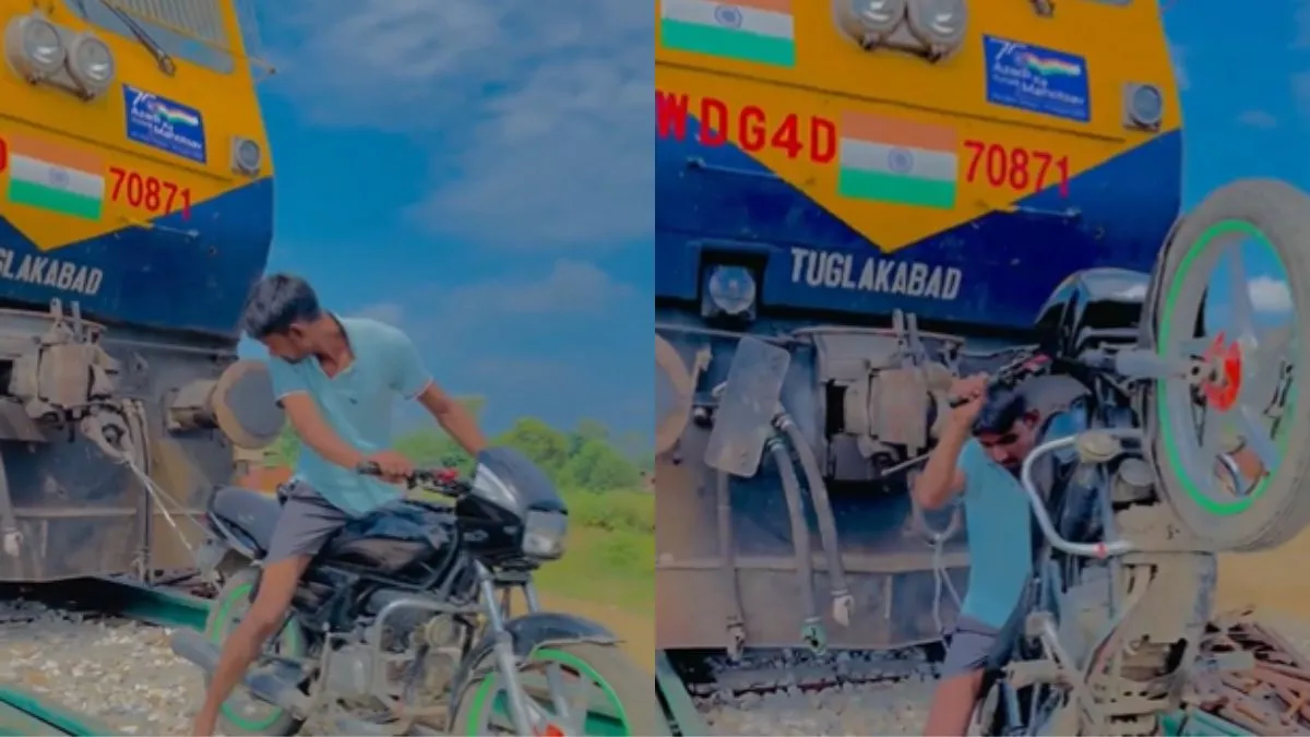 "हद बेवकूफी है यार", रील के लिए लड़का बाइक से खींचने लगा रेलगाड़ी, Video देख भड़के लोग