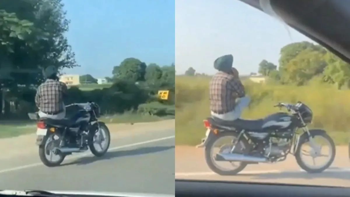 सोशल मीडिया प्लेटफॉर्म एक्स (पहले ट्विटर) पर वायरल हो रहे वीडियो में नजर आ रहा है कि एक शख्स बाइक पर कहीं जा रहा है। लेकिन जिस तरह एक आम इंसान हैंडल पकड़कर और दोनों तरफ पैर लटकाकर बाइक चलाता है, यह आदमी नहीं चला रहा है। बल्कि यह शख्स बाइक की पीछली सीट पर बैठा है और इस तरह बैठा है जैसे यह किसी सोफे पर बैठा हो। इतना ही नहीं बाइक सड़क पर अच्छी-खासी रफ्तार में चल रही है और ये जनाब फोन पर बात कर रहे हैं। सड़क पर अपनी गाड़ी में जा रहे एक शख्स ने इसको कैमरे में रिकॉर्ड कर लिया और यह वीडियो सोशल मीडिया पर वायरल हो गया।