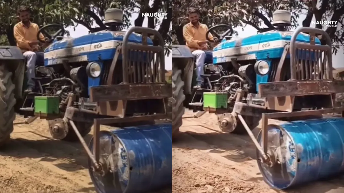 वीडियो में आप देख सकते हैं कि एक शख्स ट्रैक्टर के दोनों अगले पहियों को निकाल कर उनकी जगह एक लोहे के ड्रम को फिट कर दिया है। ऐसा करने के बाद शख्स उस रोड रोलर की तरह दिखने वाले ट्रैक्टर को कच्चे रास्ते पर चला रहा है। ट्रैक्टर किसी रोड रोलर की तरह ही काम कर रहा है। इतना ही नहीं वह कच्चे रास्ते में नीचे बिछे हुए मिट्टी को समतल भी करते जा रहा है। शायद शख्स ने इस ट्रैक्टर को इसी काम के लिए बनाया हो।