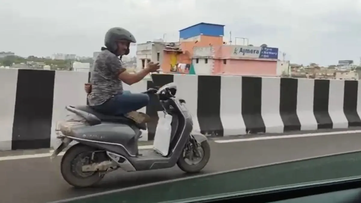 अभी जो वीडियो वायरल हो रहा है उसमें नजर आता है कि एक बंदा स्कूटी पर स्टंट मार रहा है। वीडियो में दिखता है को वो स्कूटी की सीट पर पालथी मारकर बैठा हुआ है। उसने एक हाथ को तो पीछे कर लिया है और दूसरे हाथ को भी हवा में उठाया हुआ है। मतलब वो स्कूटी का हैंडल पकड़े बिना ही अपनी स्कूटी चला रहा है। इतना ही नहीं वो स्कूटी को लहराते हुए भी नजर आ रहा है। उसे अपनी या फिर किसी दूसरे की कोई परवाह नहीं है कि अगर स्कूटी लहराने से फिसल गई तो कुछ भी हो सकता है। कार में जाते कुछ लोगों ने इसका वीडियो बना लिया जो अब वायरल हो रहा है।