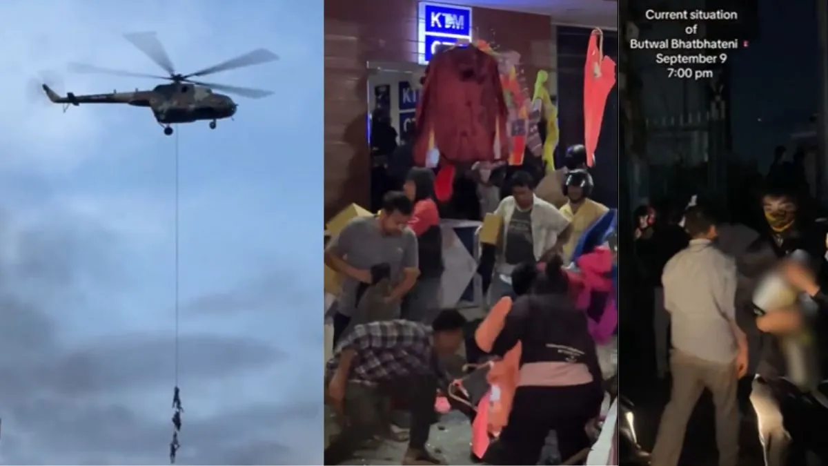 Nepal में हेलिकॉप्टर से लटकते लोग, शॉपिंग मॉल लूटती जनता और उग्र भीड़, बेहद डरावने हैं अराजकता के ये Viral Video