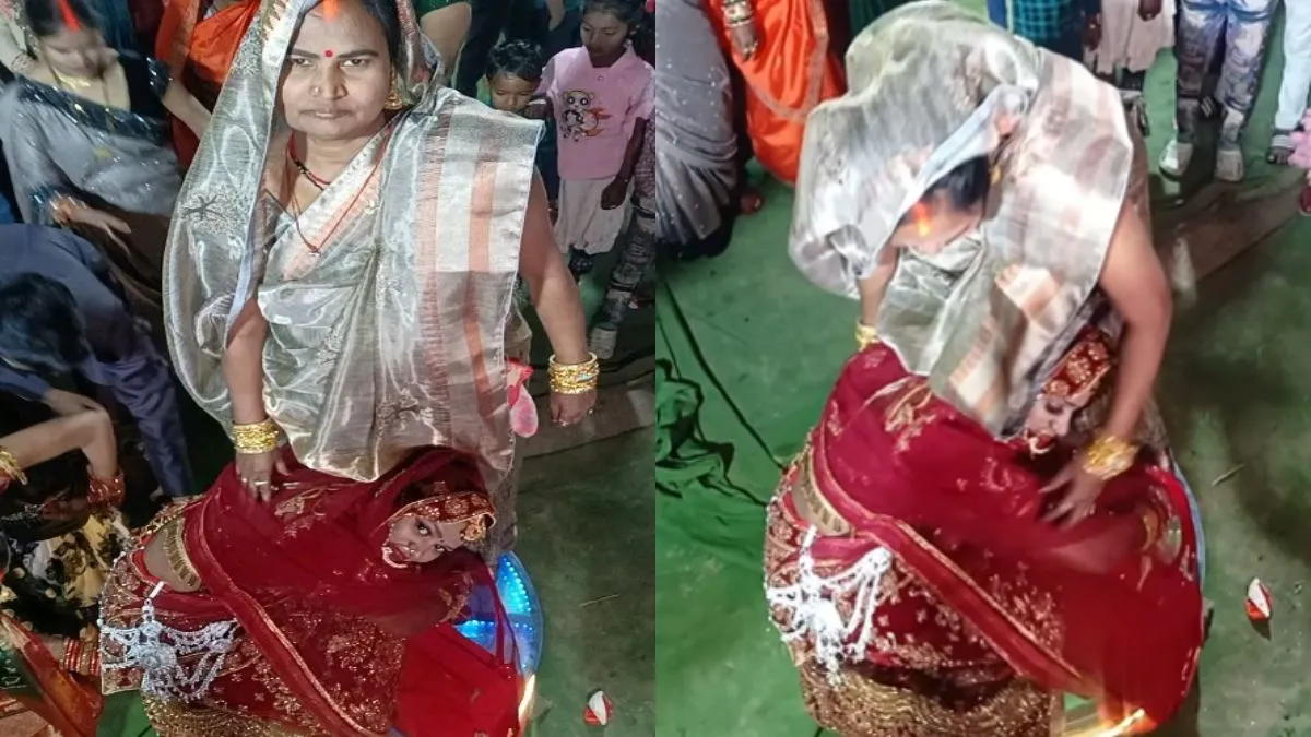वायरल हो रहे वीडियो में आप देख सकते हैं कि एक महिला पोडियम पर खड़ी है। दरअसल, यह सेल्फी पोडियम है, जिसका चलन आजकल शादी फंक्शंस वगैरह में देखने को मिल रहा है। इस पोडियम पर लोग खड़े होकर सेल्फी खींचते या वीडियो शूट करते हैं। इसी पोडियम पर एक महिला खड़ी दिख रही है। साथ में ही नई नवेली दुल्हन उनके पैर छूके आशीर्वाद ले रही है। इसके बाद कैमरा 360 डिग्री में घूमने लगता है, जिससे वीडियो गोल-गोल रोटेट होते हुए दिख रहा है। शादी में आशीर्वाद देने का यह नया तरीका सोशल मीडिया पर छाया हुआ है।