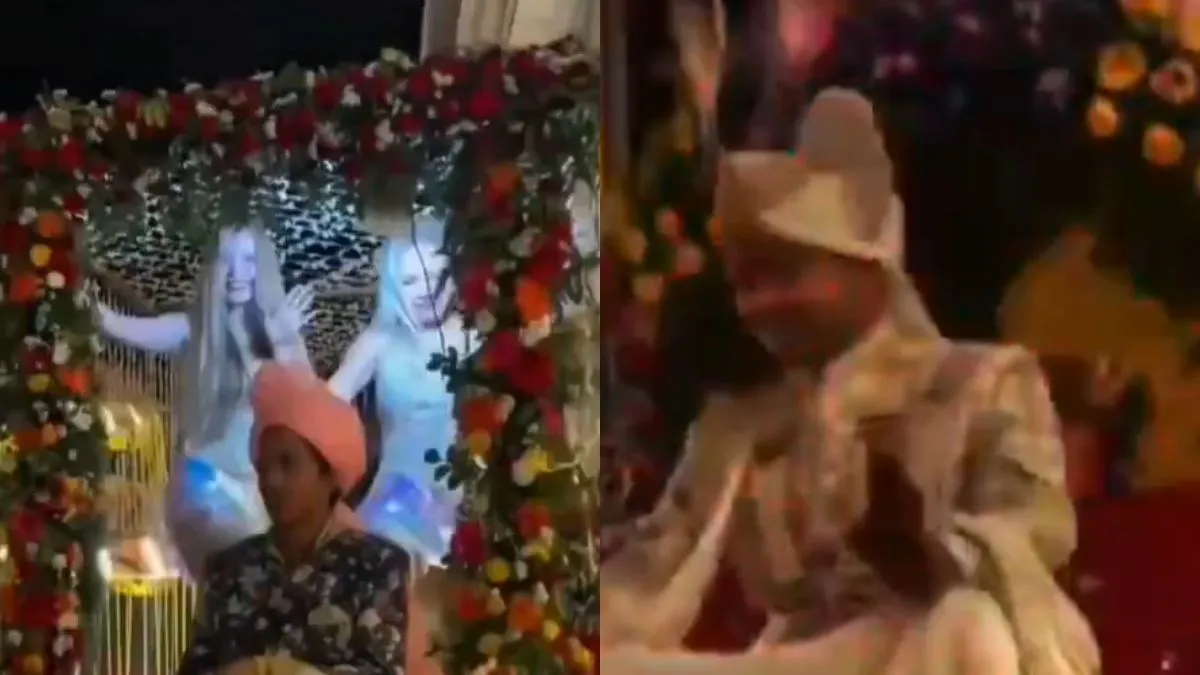 सोशल मीडिया की गलियों में लोगों को ऐसी-ऐसी चीजें देखने को मिलती हैं जो कभी देखना तो दूर, उन्होंने कभी ऐसा सोचा भी नहीं होता है। आप भी अगर सोशल मीडिया पर हैं और रेगुलर एक्टिव रहते हैं तो फिर आपके टाइमलाइन पर भी ऐसे खूब वीडियो और फोटो आते होंगे। सोशल मीडिया पर ऐसी चीजें खूब वायरल होती हैं क्योंकि ये अनोखी होती हैं और लोगों का ध्यान अपनी तरफ सबसे ज्यादा खींचती है। अनोखे जुगाड़, खतरनाक स्टंट, रील के लिए अतरंगी हरकत समेत कई तरह के पोस्ट वायरल होते हैं। अभी एक बारात का वीडियो वायरल हो रहा है।